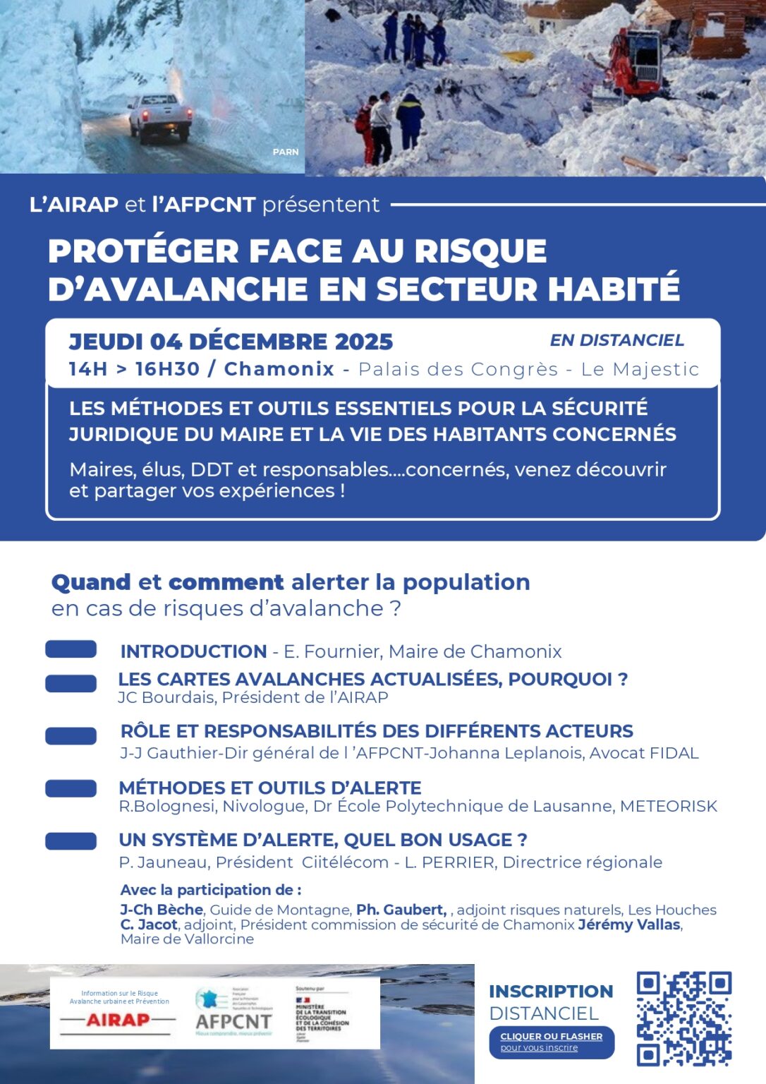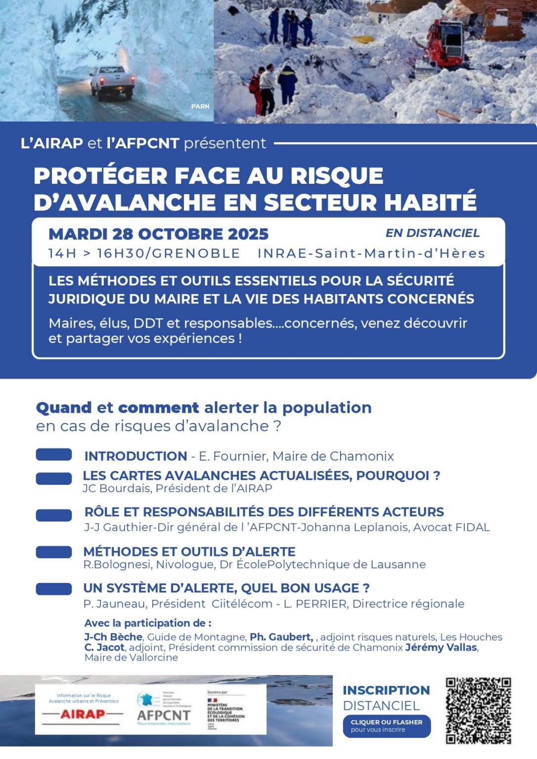 L’AFPCNT, l’AIRAP et les différents intervenants lors de ce webinaire seront heureux de vous accueillir, en distanciel, à cette réunion de présentation.Vous pourrez, à cette occasion, dialoguer avec les intervenants avec des temps de questions dédiés sur chacun des sujets abordés.- Jean-Claude Bourdais